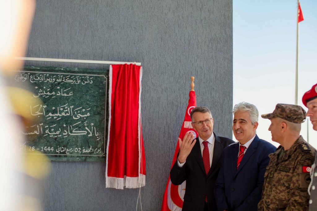 أشرف السفير الألماني بيتر بروغل صحبة عماد مميش وزير الدفاع التونسي يوم الجمعة 28 أكتوبر 2022 على الإفتتاح الرّسمي للمبنى التعليمي الجامعي بالأكاديمية العسكرية بفندق الجديد من ولاية نابل.