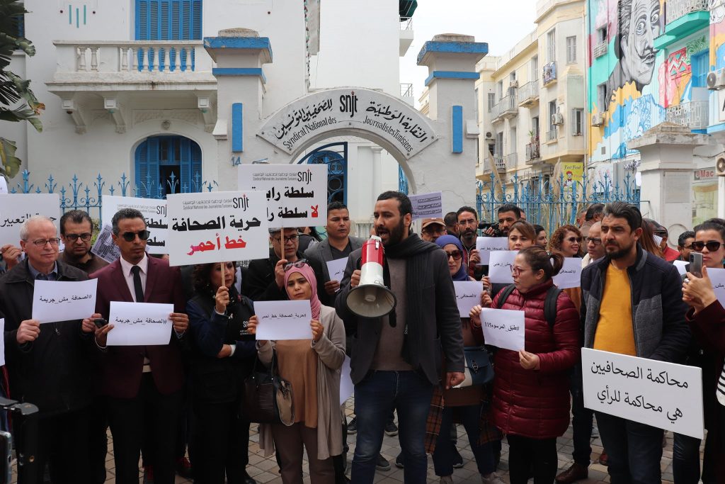 نظم عدد من الصحفيين وممثلي هياكل المجتمع المدني، اليوم الجمعة وقفة مساندة مع الصحفيين في إذاعة موزاييك خليفة القاسمي وحسين الدبابي وأمل المناع بدعوة من النقابة الوطنية للصحفيين التونسيين.