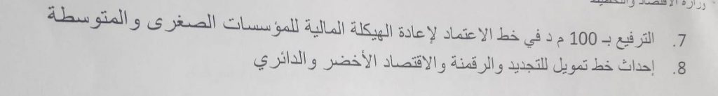 ووفق ما قدمته الحكومة في ندوة صحفية نضمتها وزارة الاقتصاد والتخطيط بمشاركة وزراء المالية والتشغيل وأملاك الدولة والتجارة وتنمية الصادرات اليوم الجمعة فإنه من المنتظر أن تساهم 8 إجراءات في دعم السيولة وتيسير نفاذ المؤسسات إلى التمويل.