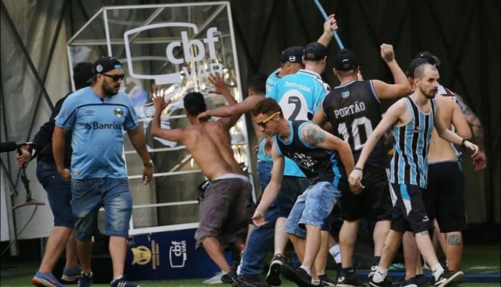 قامت جماهير فريق غريميو البرازيلي بتحطيم جهاز تقنية حكم الفيديو VAR بعد المباراة التي جمعت فريقهم ضد بالميراس بالبطولة البرازيلية والتي انتهت بخسارتهم بنتيجة 3-1 ضمن الجولة 29. ويهذه الخسارة استقر غريميو في المركز قبل الأخير في جدول الترتيب قبل 10 جولات على انتهاء الموسم حيث بات مهددا بالهبوط للدرجة الثانية.وكانت نتيجة المباراة حتى الدقيقة 88 تشير إلى تقدم بالميراس بنتيجة 2-1 لكن تمكن غريميو من إحراز هدف التعادل قبل أن يلغي الحكم الهدف بداعي تسلل بعد أن عاد لتقنية الفيديو ثم في الدقائق الأخيرة تلقى غريميو الهدف الثالث وخسر اللقاء مما اثار غضب الجماهير التي نزلت الى ارض الملعب وقامت بتحطيم جهاز VAR الذي حسب رأيها تسبب في إلغاء هدف التعادل لفريقهم خلال اللقاء.