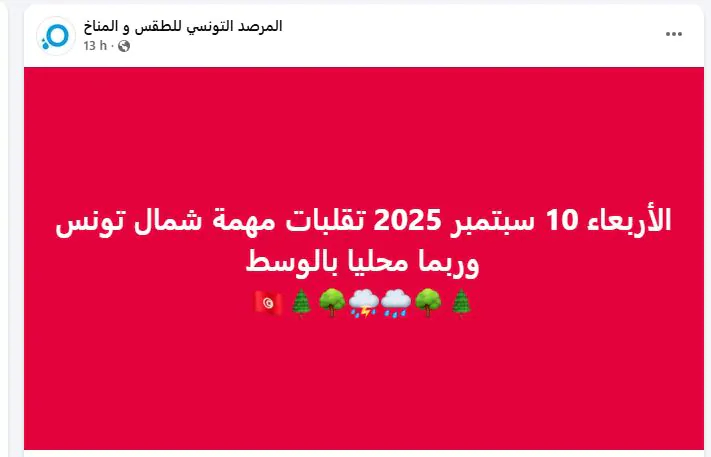 وطنية: أفاد الخبير في الطقس عامر بحبة بأنه من المتوقع تهاطل الأمطار بكميات طيبة يوم الأربعاء المقبل شمال تونس وبالوسط قراءة المزيد أفاد الخبير في الطقس عامر بحبة بأنه من المتوقع تهاطل الأمطار بكميات طيبة يوم الأربعاء المقبل شمال تونس وبالوسط