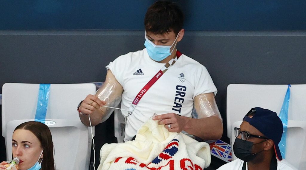 تسبب بطل الغوص البريطاني، توم دالي، بضجة كبيرة بين مشاهدي ومتابعي أحداث أولمبياد طوكيو 2020، خلال مشاهدته نهائي الوثب 3 أمتار سيدات، صباح أمس الأحد، عندما رصدته عدسات المصورين والمتفرجين على حد سواء وهو يقوم بحياكة الصوف.