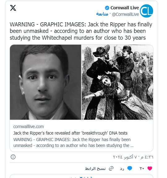 والآن، تمكن مؤلف يدرس قضية جاك السفاح منذ ما يقرب من 30 عاما من تحديد وجه القاتل المتسلسل الأكثر شهرة في العالم.