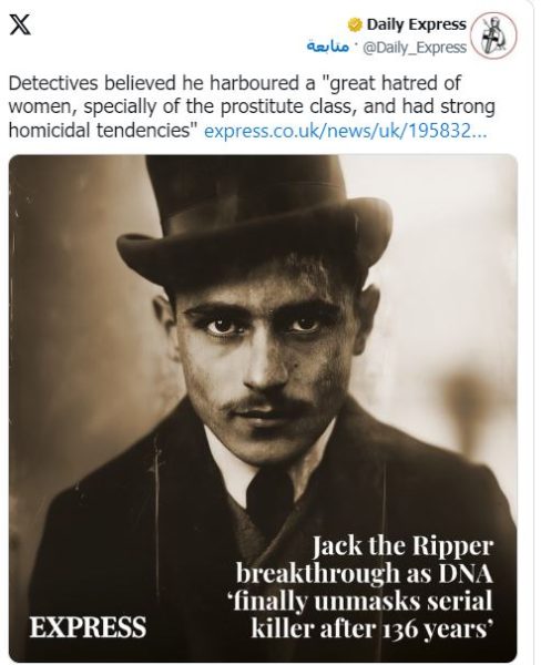 وتم ذلك بعد أن استخدم إدواردز أدلة الحمض النووي من شال إحدى الضحايا “لإثبات” أن جاك السفاح كان في الواقع آرون كوزمينسكي، وهو مهاجر يهودي من بولندا كان أحد المشتبه بهم الرئيسيين في وقت ارتكاب جرائم القتل المروعة في وايت تشابل.