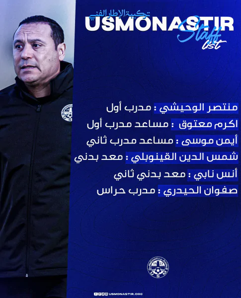 بقيادة منتصر الوحيشي.. التركيبة الفنية للاتحاد المنستيري