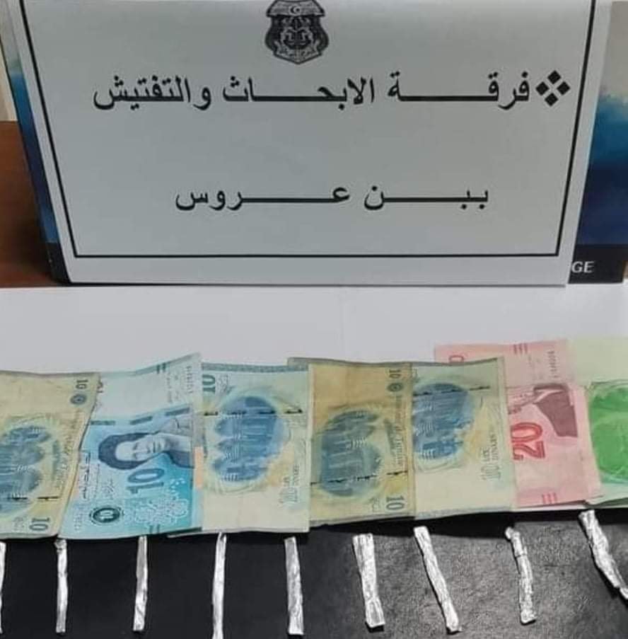 وأضاف المصدر في تصريح لـ”تونس الآن” أنه بتفتيش المشتبه فيه تم ضبط كمية من القنب الهندي ومبلغ مالي من عائدات الترويج لافتا إلى أنّ النيابة العمومية ببن عروس اذنت بالاحتفاظ به من اجل مسك و استهلاك و ترويج مواد مخدرة.