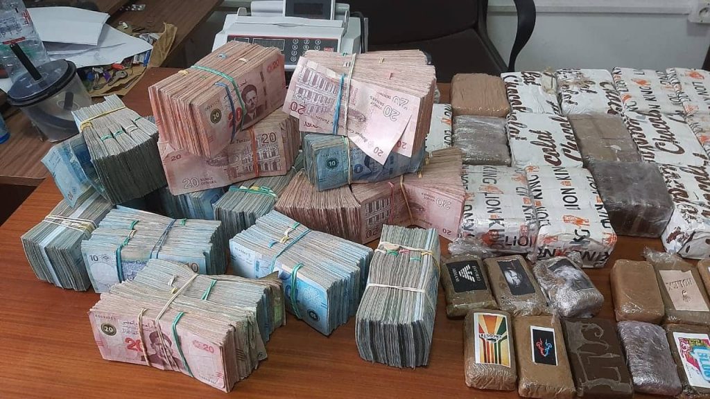 وحسب ما نقلت صفحة الناطق الرسمي بإسم الإدارة العامة للحرس الوطني على فايسبوك فقد تم إلقاء القبض على شخصين وحجز 141 صفيحة من مخدر القنب الهندي و مبلغا ماليا من العملة التونسية والأجنبية .