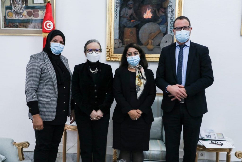 التقت رئيسة الحكومة نجلاء بودن رمضان صباح اليوم السبت بقصر الحكومة بالقصبة، أيمن الديماسي عن النقابة الأساسية لأعوان واطارات رئاسة الحكومة، وعفاف الغابري عن نقابة الهيئة العامة لمراقبة المصاريف العمومية، وعفيفة العدواني عن نقابة الهيئة العامة للوظيفة العمومية.