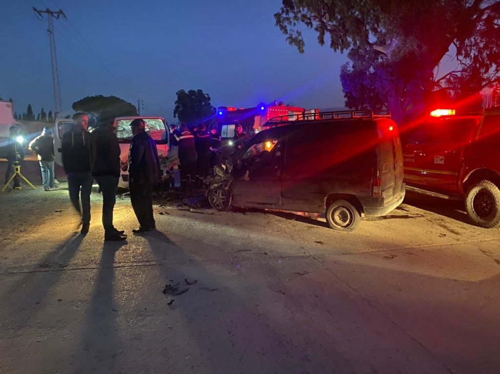 وتتمثل صورة الحادث في اصطدام سيارة نقل جماعي وسيارة خاصة، وفق ما جاء على الصفحة الرسمية للإدارة الجهوية للحماية المدنية بنابل، على “الفايسبوك”.