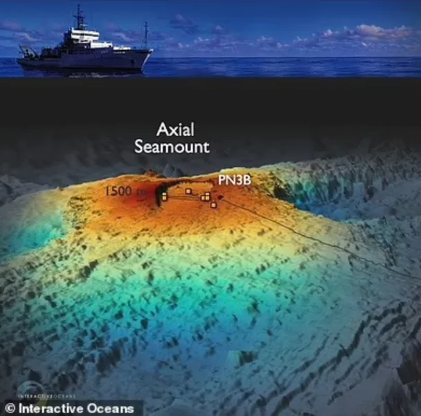 ويقع جبل أكسيال سيمونت، وهو بركان تحت الماء بعرض ميل واحد، على بعد 300 ميل من ساحل ولاية أوريغون، وأكثر من 4900 قدم تحت سطح المحيط الهادئ.