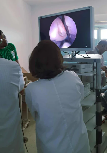 وقد تم في انجاز هذا التدخل، الذي يتنزل في مزيد تقريب الخدمات الصحية من المواطنين باستخدام جهاز متطور خاص بعمود الأنف والأذن والحنجرة، وهو جهاز جديد تحصل عليه هذا القسم في اطار هبة من مكتب الأمم المتحدة لدعم الخدمات الطبية.