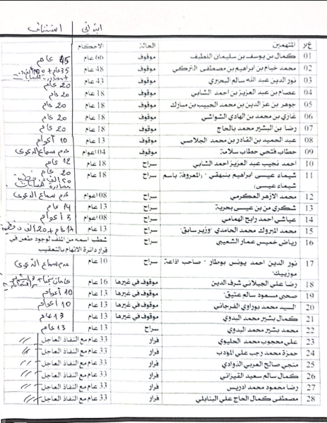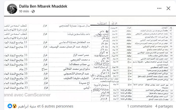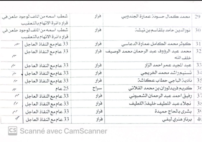 وبالنسبة للمتهمين بحالة فرار فقد قضت المحكمة بإقرار العقوبات السجنية المحكوم بها ابتدائيا في حقهم (33 عام مع النفاذ العاجل) مع الترفيع فيها بالنسبة لبعضهم (43 عاما مع النفاذ العاجل).