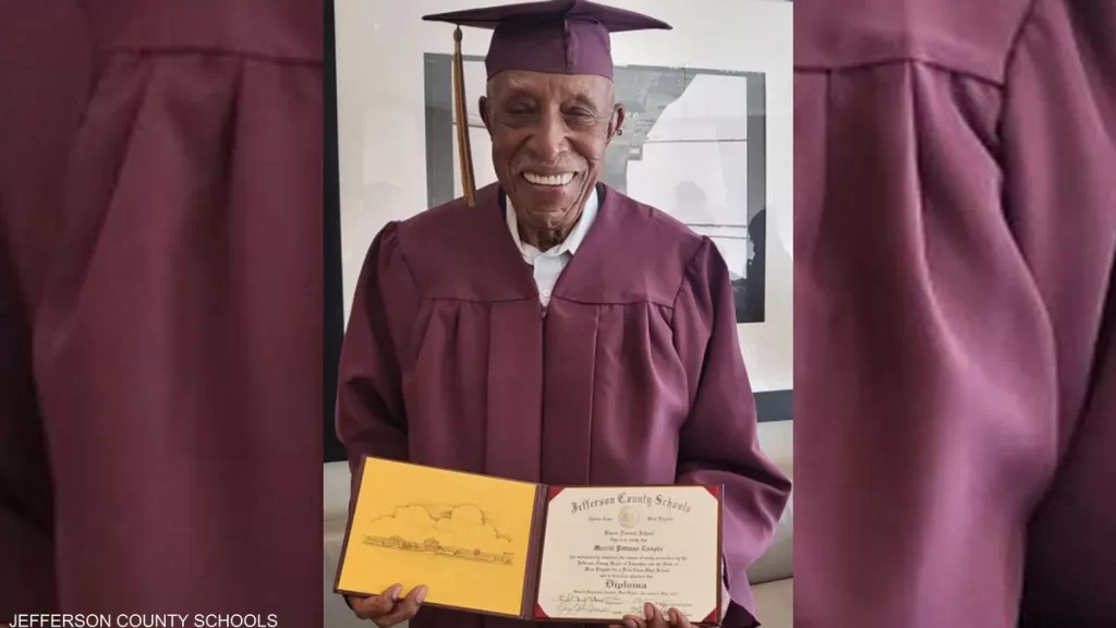 وقالت هيئة التعليم في مقاطعة جيفرسون بولاية فرجينيا الغربية، إن ميريل بيتمان كوبر البالغ من العمر 101 عام، كان منتظما في مدرسة “ستورر”، لكنه اضطر إلى ترك التعليم سنة 1938 في أعقاب انتقاله ووالدته لأسباب مالية إلى فيلادلفيا.