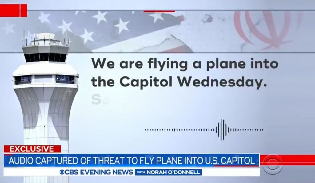 وجاء في التسجيل الذي نشرته شبكة “سي بي إس” الأمريكية تهديدا يقول، “نحن نطير بطائرة مدينة إلى مبنى الكابيتول يوم الأربعاء. سننتقم لسليماني”.
