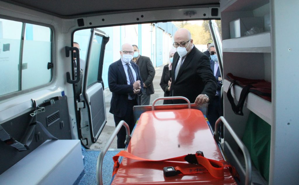 انتظم صباح اليوم الجمعة 26 مارس 2021 بإشراف وزير الصحّة الدّكتور فوزي مهدي وسفير الاتّحاد الأوروبي بتونس ماركوس كورنارو(Marcus Cornaro)، موكب تسلّم دفعة جديدة من سيّارات الإسعاف الطبّي المجهّزة وسيّارات رباعيّة الدّفع إلى جانب شحنة من المعدّات والمستلزمات الطبيّة المتطوّرة، وذلك في إطار برنامج “الصحّة عزيزة” المموّل من الاتّحاد الأوروبي لدعم الخدمات الصحيّة بالخطّ الأوّل بـ 13 ولاية ذات الأولويّة.