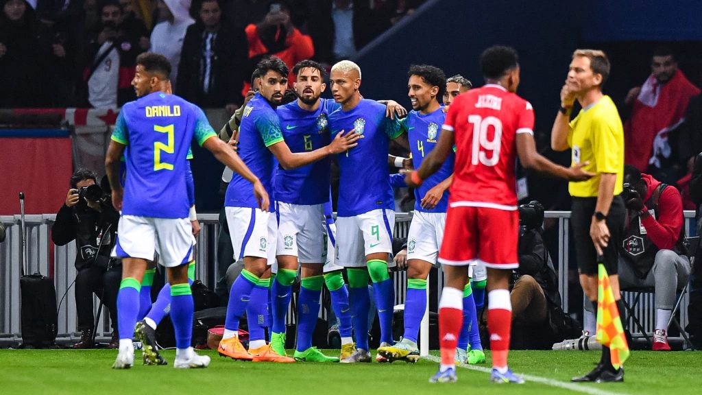 هذا وشهد الشوط الأول تسجيل 5 اهداف كاملة ففي الدقيقة 11 افتتح رافينيا النتيجة للمنتخب البرازيلي عبر رأسية مباغتة لكن سرعان ما ردت تونس الفعل اثر مخالفة ثابتة في الدقيقة 16 تلقاها راس منتصر الطالبي ليعدل النتيجة لكن سرعان ما جاء رد الفعل البرازيلي في الدقيقة 17 على طريق ريتشارليسون الذي أضاف الهدف الثاني للبرازيل