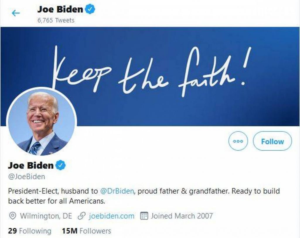 يشار إلى أن لدى حساب بايدن الشخصي 21.7 مليون متابع، لن يتأثر بطبيعة الحال بهذه الخطوة.