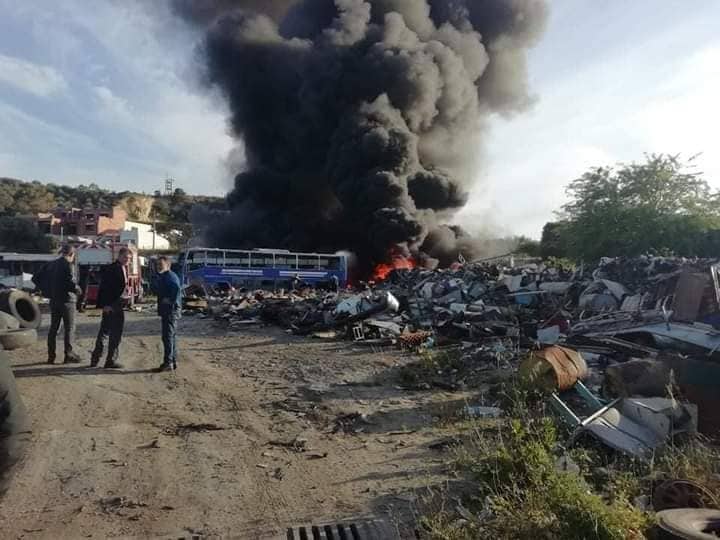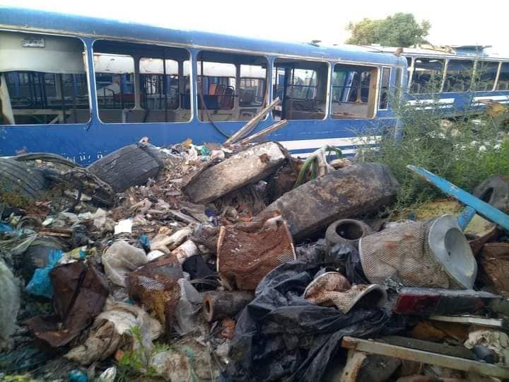 وأتى حسب ما اكده ذات المصدر على جزء كبير من قطع الغيار والعجلات المستعملة وبقايا الحافلات القديمة غير الصالحة للاستعمال.