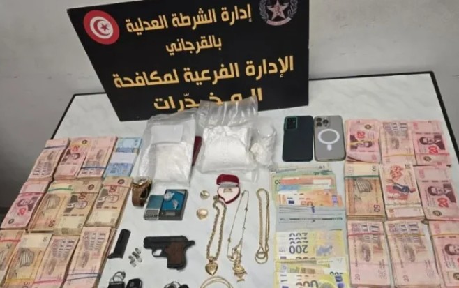 وأسفرت العملية عن حجز 1 كلغ كوكايين، مسدس صوتي مع 5 طلقات، مبلغ مالي قدره 34 ألف دينار، عملة أجنبية ومصوغ، وسيارتين.