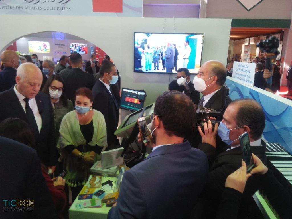 وتحدث رئيس الدولة خلال جولته مع مجموعة من الكتاب ومسؤولي دور النشر وكان صحبة وزيرة الشؤون الثقافية حياة قطاط الڨرمازي.