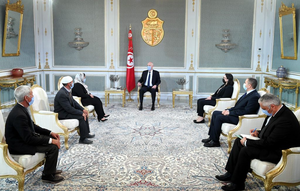 استقبل رئيس الجمهورية قيس سعيّد اليوم الجمعة 5 مارس 2021 بقصر قرطاج ممثلين عن عائلات شهداء وجرحى ملحمة بن قردان، التي جرت أحداثها يوم 7 مارس 2016 ، وهم السيدة بسمة الجويلي أرملة الشهيد محمود التايب أحد المواطنين الذين كانوا ضحايا الملحمة، ورئيسة جمعية “أسر شهداء ملحمة 7 مارس بن قردان” والسيد مبروك الموفق (والد سارة الموفق أصغر شهيدة في الملحمة) والسيد مصباح خلف الله (أحد الجرحى المدنيين).