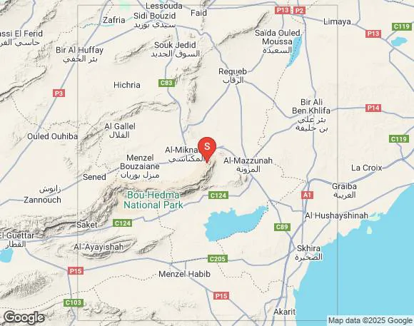 رجة أرضية اليوم الجمعة 21 فيفري 2025 على الساعة 07 و16 دقيقة بلغت قوتها 3.5 درجة على سلم ريشتر شرق معتمدية المكناسي من ولاية سيدي بوزيد.
