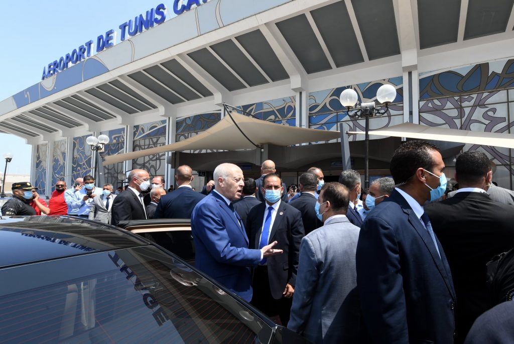 انتقد رئيس الجمهورية قيس سعيد الاطراف التي تصف الاجراءات الاحترازية المتخذة على مستوى منع بعض الاسماء من السفر ،بالدكتاتورية قائلا :”اين يرون الدكتاتورية ؟ هل نصبت المشانق؟ هل اعدم شخص بالرصاص ؟ ما يحدث امر غريب … عندما تتكلم مع الاجنبي يقتنع بكلامك ويستوعبه ..هل يعقل ان يمتلك قاض مسكنا وسيارة بمبالغ مثيرة للريبة ؟يصفون ما حصل بالانقلاب وهم الانقلابيون لانهم لا يقبلون كلمة الحق … سأكون عل موعد مع التاريخ و الى جانب الشعب التونسي ومن يعتقد انس سأتراجع الى الوراء فهو واهم .
