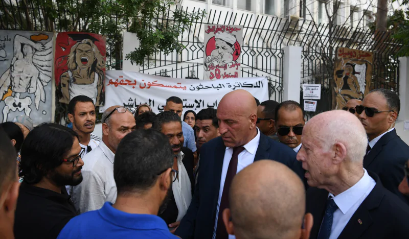 وتحدث الرئيس مع الدكاترة العاطلين عن العمل المرابطين امام مقر وزارة التعليم العالي ، واعدا اياهم انه سيتم في القريب ايجاد طرق واليات لانتدابهم وانهاء معاناتهم