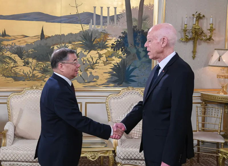واستعرض رئيس الدّولة الحصيلة المثمرة والإيجابية لتجارب التعاون الثنائي والمشاريع التي تمّ إنجازها خاصة في مجالات البنية التحتية والنقل والصحة وغيرها من المشاريع التي يجري العمل على تنفيذها في أقرب الآجال على غرار مشروع مدينة الأغالبة الطبية بالقيروان وجسري بنزرت وجربة والحي الأولمبي بالمنزه وتوسيع مطار تونس قرطاج الدولي ومشروع السكة الحديدية التي تربط شمال البلاد بجنوبها، هذا فضلا عن مجالات تعاون أخرى كالسياحة والثقافة وغيرهما. وأكّد رئيس الجمهورية على أهمية مبادرة “الحزام والطريق” التي انخرطت فيها تونس نظرا إلى ما تتيحه هذه المبادرة من فرص تعاون وشراكة حقيقية وفق رؤية جديدة لبناء عالم أكثر إنسانية. وجدّد رئيس الدّولة تأكيد موقف تونس الداعم لمبدأ الصين الواحدة ورفض التدخل في الشؤون الداخلية للدول. من ناحية أخرى، دعا رئيس الجمهورية إلى ضرورة وضع حدّ لجرائم الإبادة المتواصلة التي يرتكبها الكيان الصهيوني الغاصب في فلسطين مجدّدا موقف تونس الثابت الداعم لحقّ الشعب الفلسطيني في إقامة دولته المستقلة كاملة السيادة على كلّ أرض فلسطين وعاصمتها القدس الشريف. وأشار رئيس الجمهورية في هذا السياق إلى أنّ المجتمع الإنساني أخذ يتشكّل وصار متقدّما على المجتمع الدولي وبدأ ينتفض ضدّ جرائم الإبادة ليصحّح بذلك مسار التاريخ في قادم الأعوام. كما دعا رئيس الدّولة إلى ضرورة العمل من أجل إرساء نظام اقتصادي عالمي جديد أكثر عدالة وإنصافا يقطع مع الماضي وتتحقّق فيه التطلعات المشروعة للشعوب التي عانت الكثير ولا تزال من نهب للثروات ومن حروب أهلية لتقرّر مصيرها بنفسها وتعيش حياة كريمة في كنف العدل والحرية والكرامة البشرية. وفي ختام اللقاء حمّل رئيس الجمهورية الضيف الصيني إبلاغ تحياته إلى الرئيس “”شي جين بينغ” مجددا له الدعوة لأداء زيارة إلى تونس.
