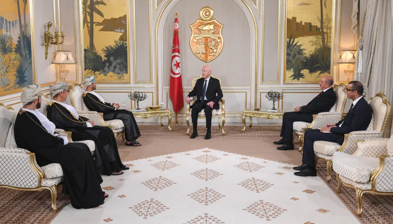 وأشاد رئيس الدّولة بالرعاية التي تحظى بها الجالية التونسية المُقيمة بسلطنة عُمان.