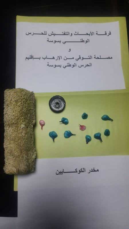 تمكنت فرقة الأبحاث والتفتيش بسوسة في إطار عمل مشترك مع مصلحة التوقي من الإرهاب بسوسة وبعد عمل استخباراتي دقيق، من إلقاء القبض على مروج خطير للمخدرات يقطن بحي العوينة سوسة وحجزت لديه 10 غرامات من مادة الكوكايين معدة للترويج كان يخفيها بإحكام داخل فرشاة دهن.