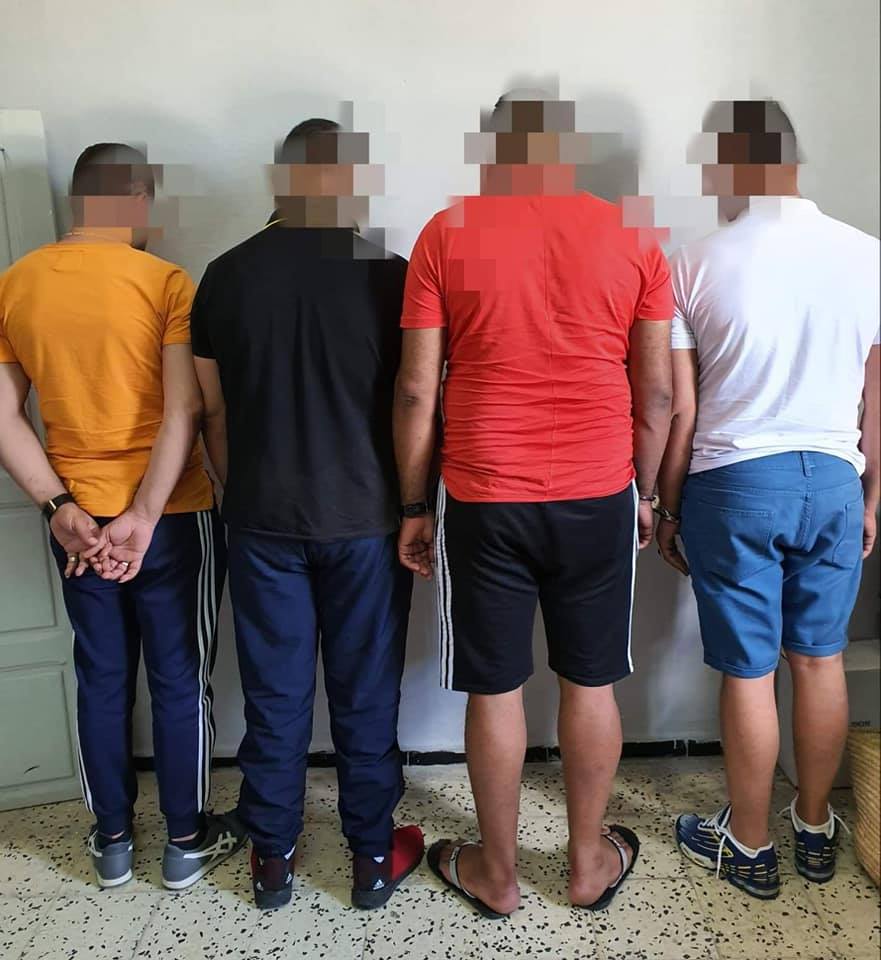 وب استشارة النيابة العمومية بالمحكمة الابتدائية بسوسة 1 و2 وبعد التأكد من تواجد الأشخاص ال 4 بالمنازل المتسوغة على وجه الكراء تمت المداهمة وإلقاء القبض عليهم جميعا وحجز لديهم ما يلي: