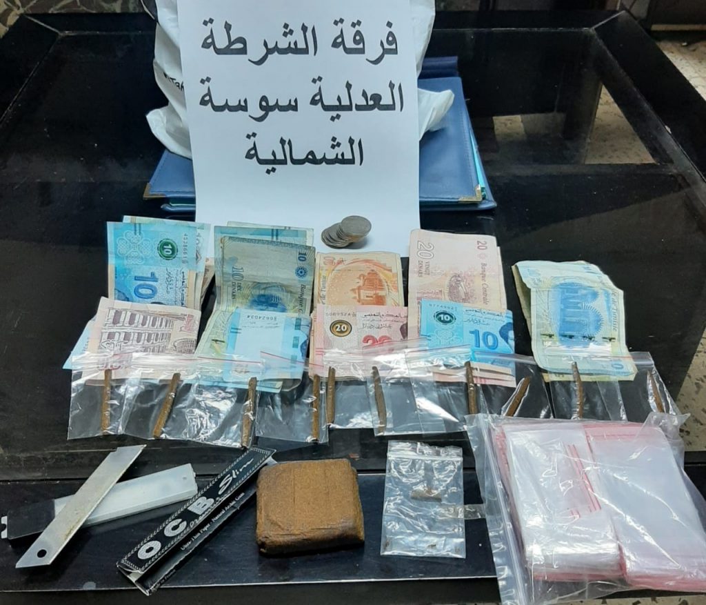 تمكنت فرقة الشرطة العدلية بمنطقة الامن الوطني سوسة الشمالية من الاطاحة بأحد مروجي المخدرات بجهة سوفيفا التابعة لمنطقة سوسة،قد و تم العثور على قطع معدة للترويج بحوزته وبتفتيش مقر اقامته تم العثور أيضا على نصف صفيحة من مادة” الزطلة” وعديد القطع الاخرى وادوات القص والوزن اضافة الى مبلغ مالي من عائدات بيع هذه المادة.