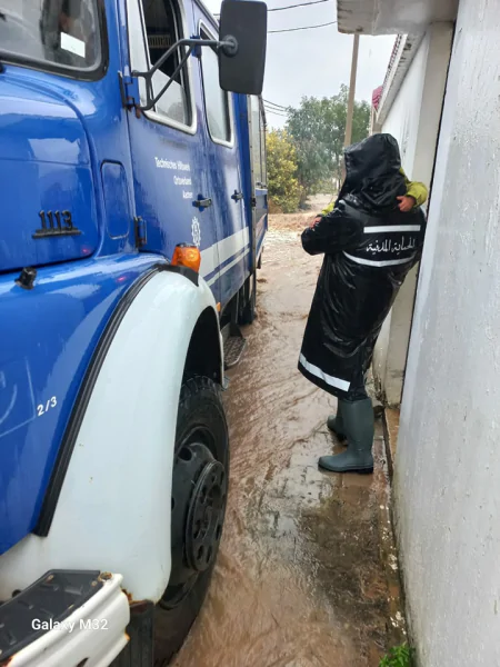 كما تدخلت مصالح الحماية المدنية لمساعدة المواطنين وسكان منطقة حي المرجان للمرور و العبور لقضاء مصالحهم الخاصة على اثر تراكم كميات هامة من المياه بالانهج اضافة الى القيام بعمليات ضخ للمياه من المنازل بكامل المدينة.