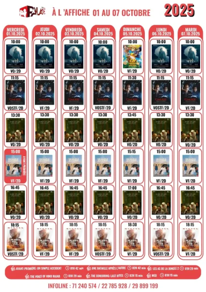 حاليا في قاعات السينما: تضع قاعة سينما البالاص على ذمة متابعي السينما التونسية والعربية والعالمية برمجة ثرية وبرنامجا متنوعا الى غاية يوم 7 أكتوبر 2025.