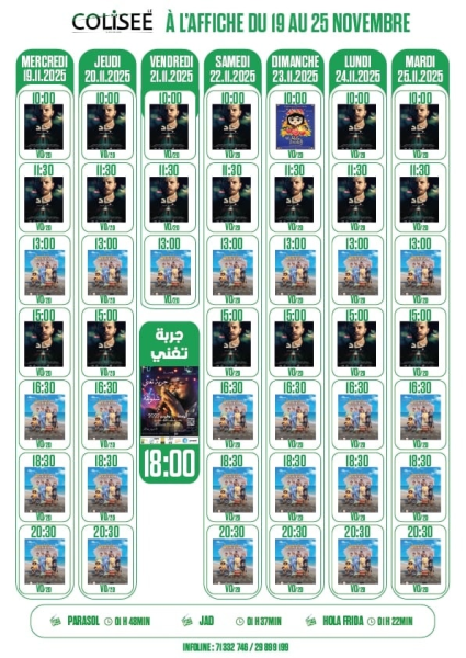 حاليا في قاعات السينما: تضع قاعة سينما الكوليزي على ذمة متابعي السينما التونسية والعالمية برنامجا متنوعا الى غاية يوم 11 نوفمبر 2025.