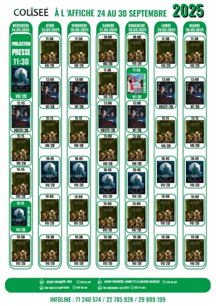 حاليا في قاعات السينما: تضع قاعة سينما الكوليزي على ذمة متابعي السينما التونسية والعالمية برنامجا متنوعا الى غاية يوم 30 سبتمبر 2025.