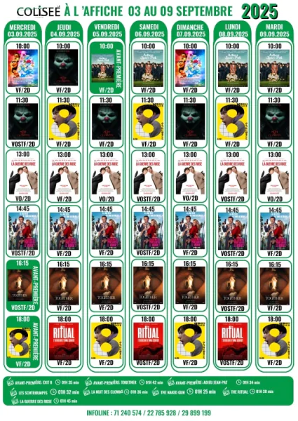 ثقافة: تضع قاعة سينما الكوليزي على ذمة متابعي السينما التونسية والعالمية برنامجا متنوعا الى غاية يوم 9 سبتمبر 2025.