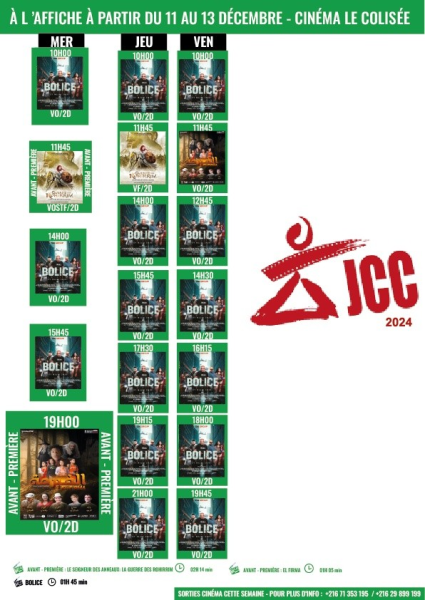 حاليا في قاعات السينما: تضع قاعة سينما الكوليزي على ذمة متابعي السينما التونسية والعالمية برنامجا متنوعا الى يوم 13 ديسمبر 2024.