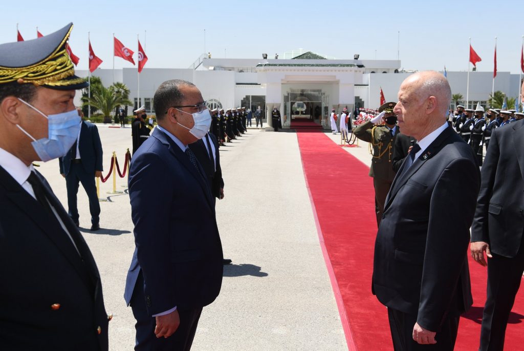 واحقاقا للحق فان العرف كان يقضي بان يرافق رئيس الحكومة رئيس الدولة على امتداد السجاد الأحمر ويقف خلفه عند تحية العلم ويوصله الى مدرج الطائرة ( الصورة 4 و5 تظهر الفخفاخ يفعل ذلك مع قيس سعيد )
