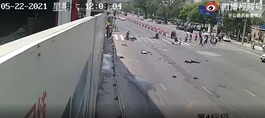ونشرت وسائل إعلام صينية لقطات وثقت لحظة وقوع الحادث.