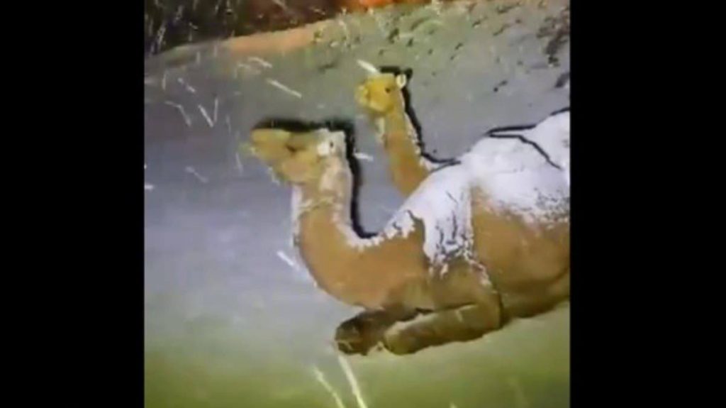 وأظهر فيديو نشر عبر موقع التواصل الاجتماعي “تويتر”، الثلوج تسقط بغزارة فجر اليوم الخميس في شمال المملكة، فيما كانت الجمال تبرك وهي مغطاة بطبقات من البياض.