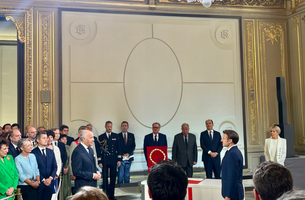 وبدأ الحدث بإعلان النتائج الرسمية للانتخابات من قبل رئيس المجلس الدستوري لوران فابيوس.