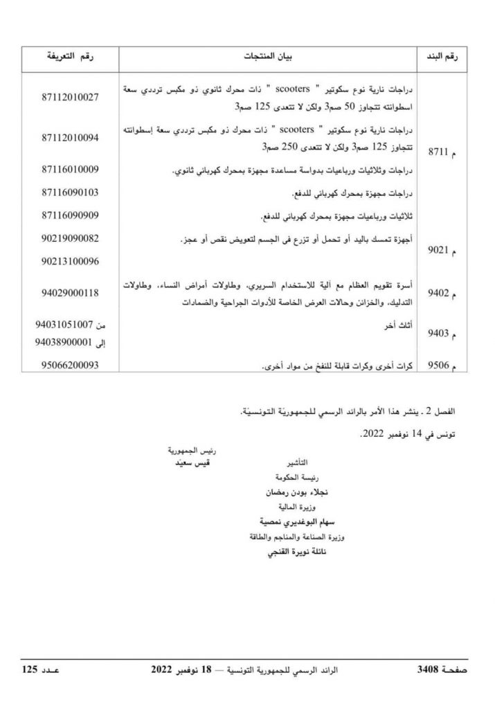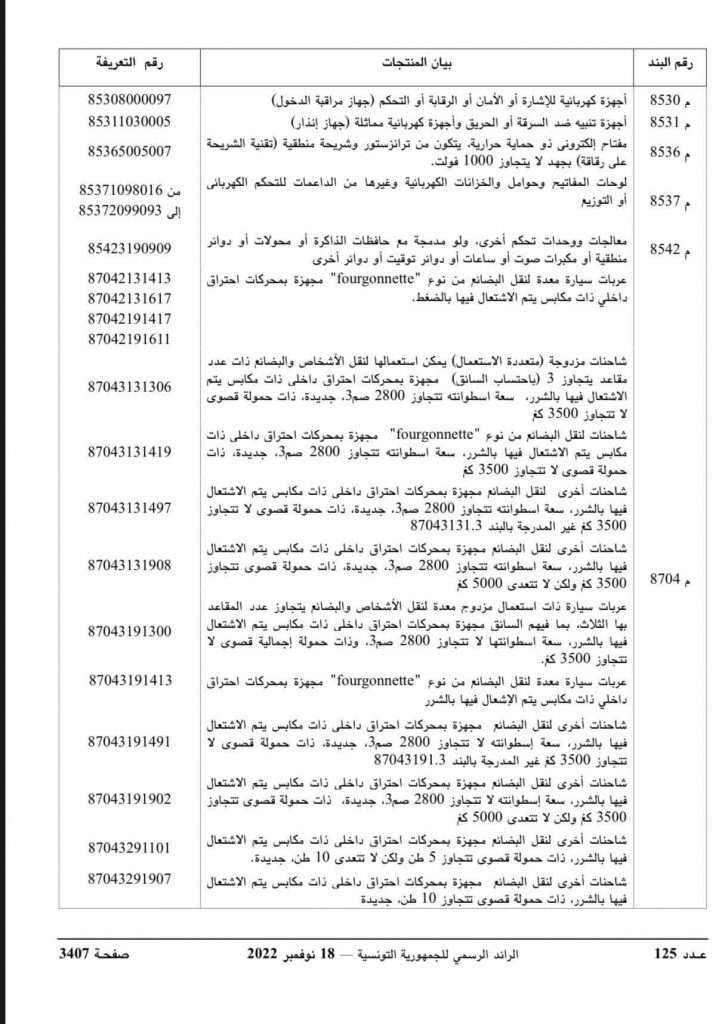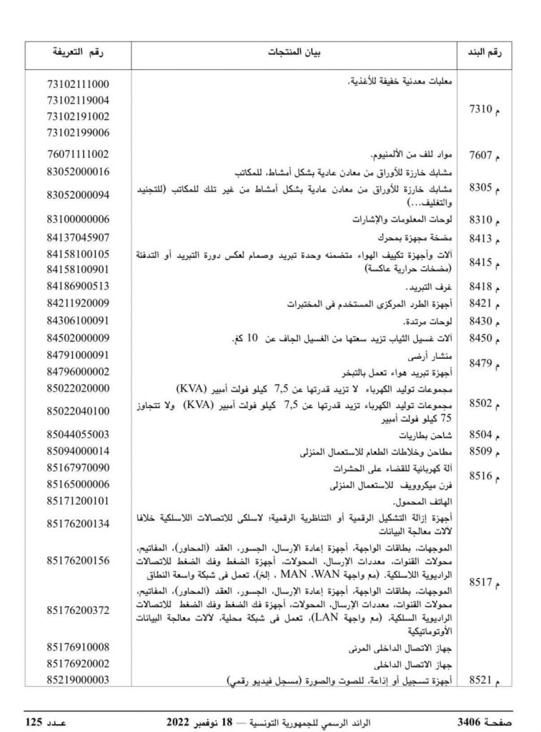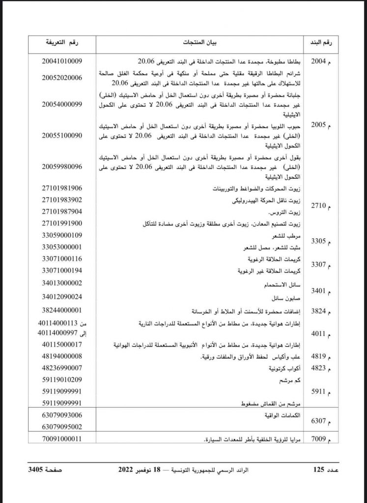 تونس الانقائمة المنتجات المعفاة من الضريبية الديوانية