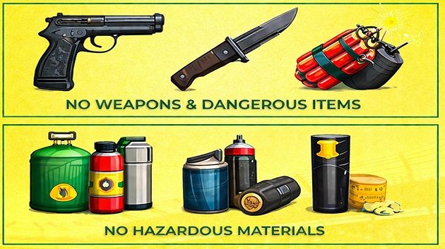 كما يشمل المنع المواد ذات الطابع الكيميائي أو الغازي مثل أسطوانات الغاز والعبوات المضغوطة والمواد القابلة للاشتعال، في إطار إجراءات تهدف إلى تأمين المباراة وضمان سلامة الجماهير داخل الملعب.