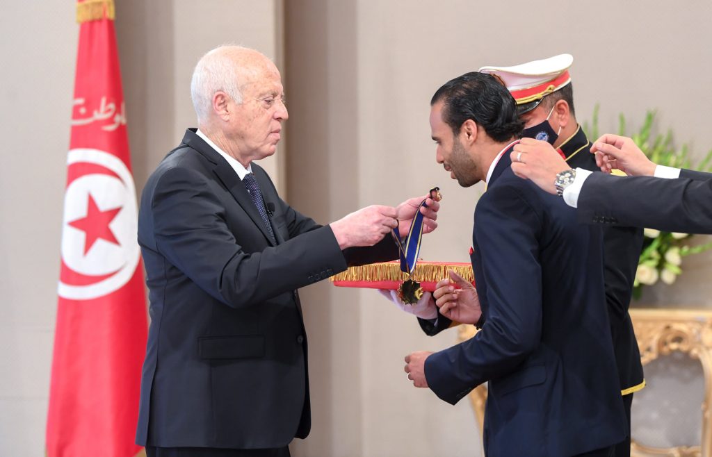 كما كرّم سعيّد لاعبي المنتخب الوطني الأول لكرة السلة الفائز بكأس إفريقيا للأمم 2021 والمنتخب الوطني الأول للكرة الطائرة الفائز ببطولة أمم إفريقيا لعام 2021.