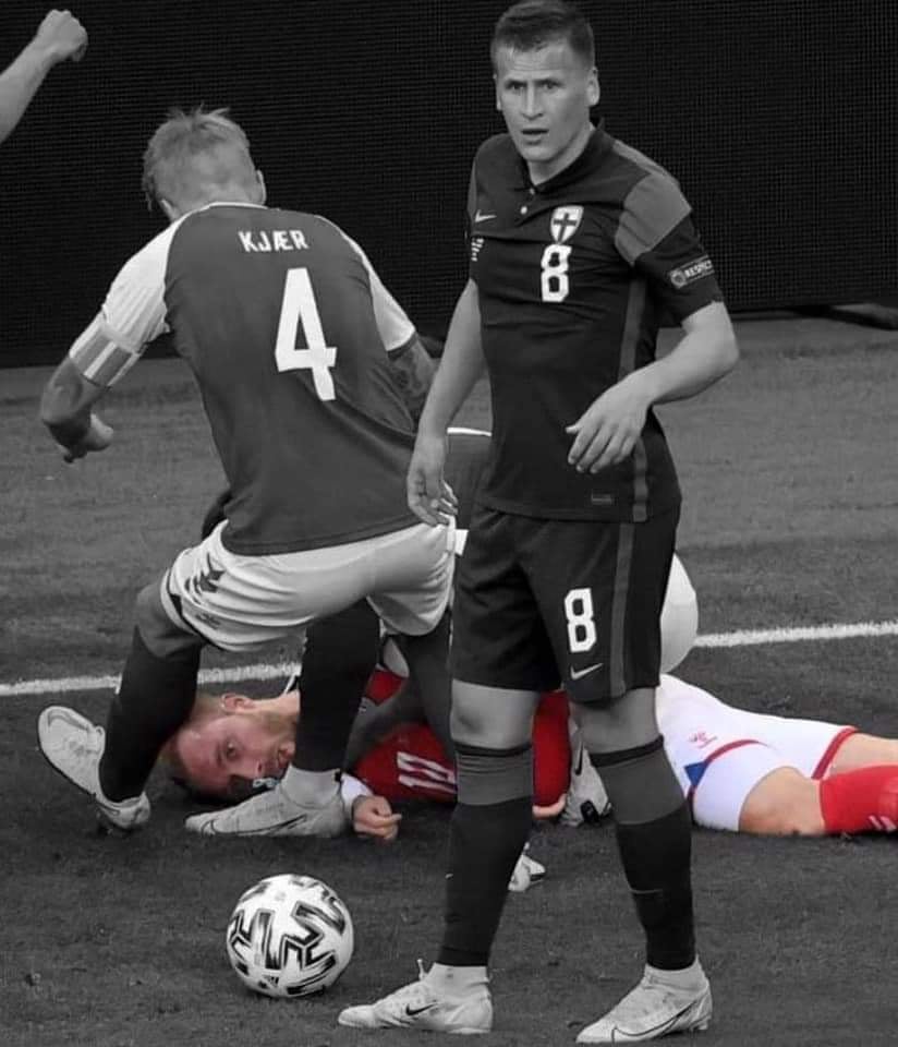 وانهار إريكسن (29 عاماً) داخل الملعب قبل دقيقتين من نهاية الشوط الأول، دون أي تدخل من أي لاعب آخر، وحاول الجهاز الطبي لمنتخب الدنمارك علاج اللاعب على مدار عشر دقائق قبل نقله إلى المستشفى.