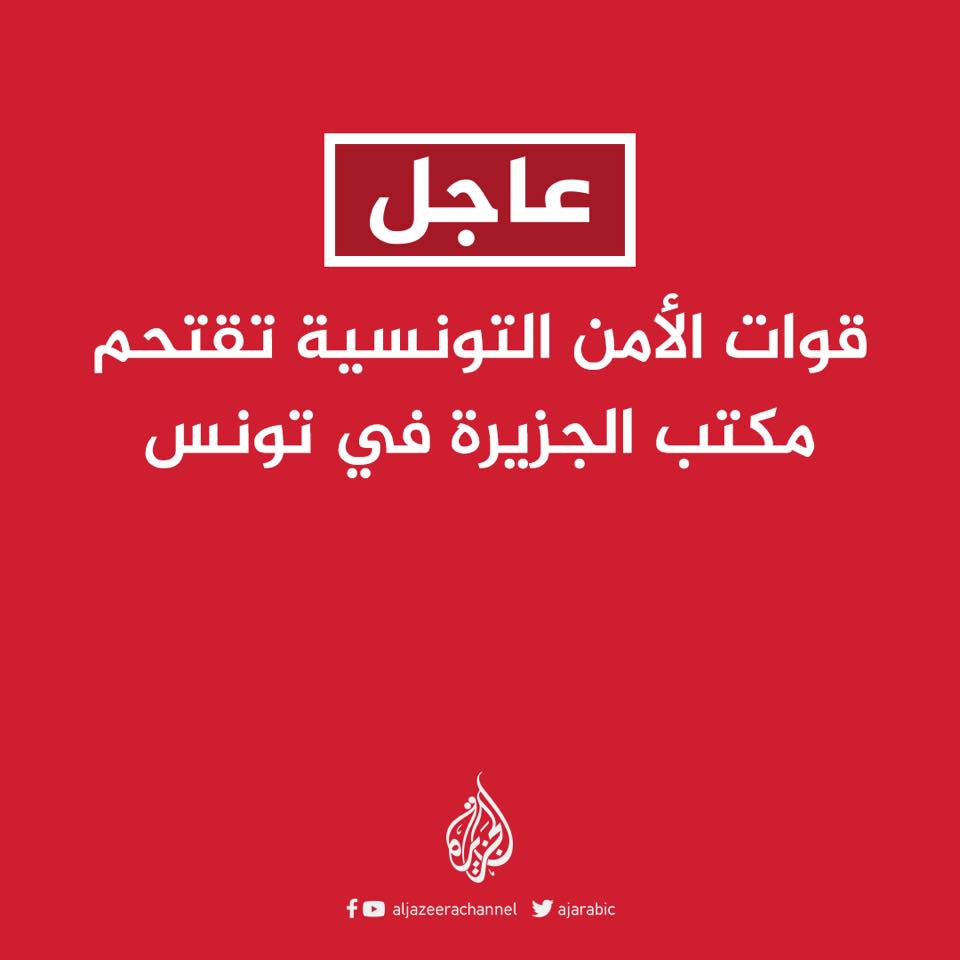 اعلنت قناة الجزيرة ان قوات امنية اقتحمت مكتبها بتونس وتطرد […] قراءة المزيد اعلنت قناة الجزيرة ان قوات امنية اقتحمت مكتبها بتونس وتطرد الصحفيين منه