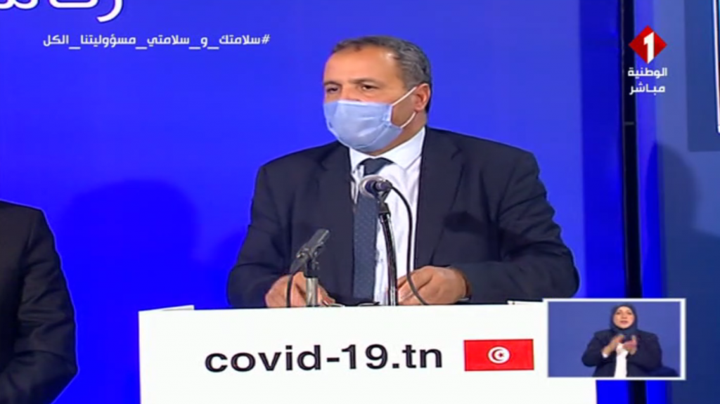 أشار وزير الصحة عبداللطيف المكي في رده على أسئلة الصحفيين خلال الندوة الصحفية المشتركة اليوم إلى أنه ستسلط خطية مالي على كل من يتواجد بالشارع في فترة الحجر اصحي دون ان يكون مرتديا كمامة.