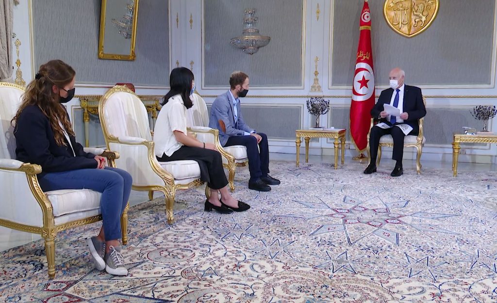 وتروي فيفيان قصة لقائها بقيس سعيد قائلة: “لقد قضيت عدة أيام في العاصمة عندما تلقيت فجأة مكالمة مع اثنين من الصحافيين الآخرين العاملين في صحيفة نيويورك تايمز لمقابلة الرئيس. اعتقدت أنها قد تكون فرصتي في حواره. لكن اتضح لي لاحقا أنه تمت دعوتنا لسماع محاضرة” من جانب الرئيس